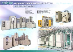 Based in Taiwan, Vigor Machinery CO., LTD. is a lamination press, sheeter and slitting machinery supplier in electronics, composites, plastics and rubber industries. Main machinery, including PCB and vacuum lamination press, FPCB vacuum quick press, laboratory press, high temperature press, hot and cold press, copper foil sheeter, sheeter & slitting, resin tester, etc.