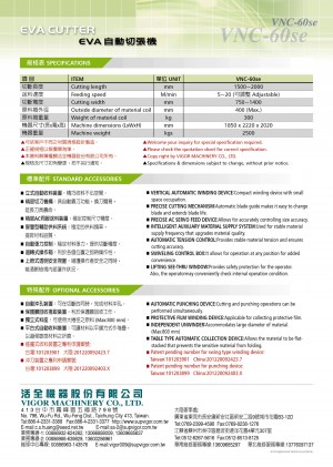 EVA 자동 절단기 VNC-60SE 제품 카탈로그를 다운로드하세요.