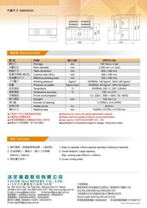 Đặt trụ sở tại Đài Loan, Vigor Machinery CO., LTD. là nhà cung cấp máy ép lớp, máy cắt và máy cắt dọc trong ngành điện tử, composite, nhựa và cao su. Các máy chính bao gồm máy ép PCB và chân không, máy ép nhanh FPCB chân không, máy ép thí nghiệm, máy ép nhiệt độ cao, máy ép nóng và lạnh, máy cắt lá đồng, máy cắt và cắt dọc, máy kiểm tra nhựa, v.v.